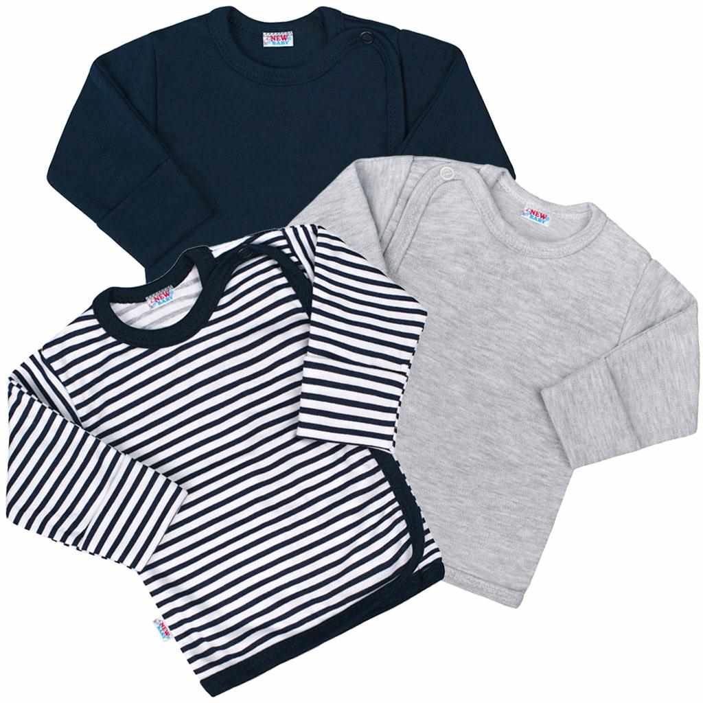 Klasická kojenecká košilka New Baby Classic II Kluk. Košilka se zapíná na cvočky na ramínku a boční straně. Rukávky košilky lze ohrnout. Košilka je vyrobená z příjemného, měkkého a kvalitního materiálu, ve kterém se miminko bude cítit velmi pohodlně. Cenově výhodné balení obsahuje 3 ks - 1x košilka tmavě modrá, 1x - košilka s pruhy, 1x košilka šedá. Složení: 100% bavlna.