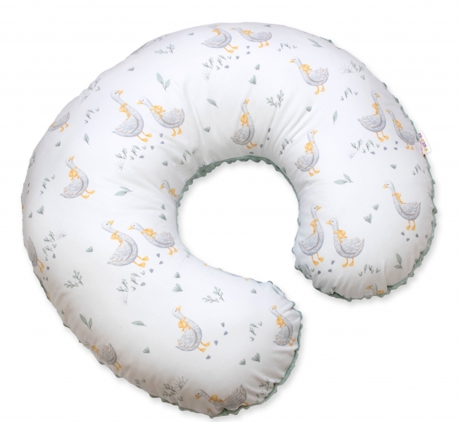 Kojící polštář, bavlna/minky, Husy, bílá/mátová