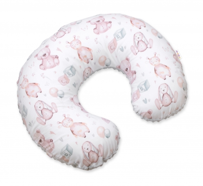 Kojící polštář, bavlna/minky, Veselé hračky, bílá/šedá