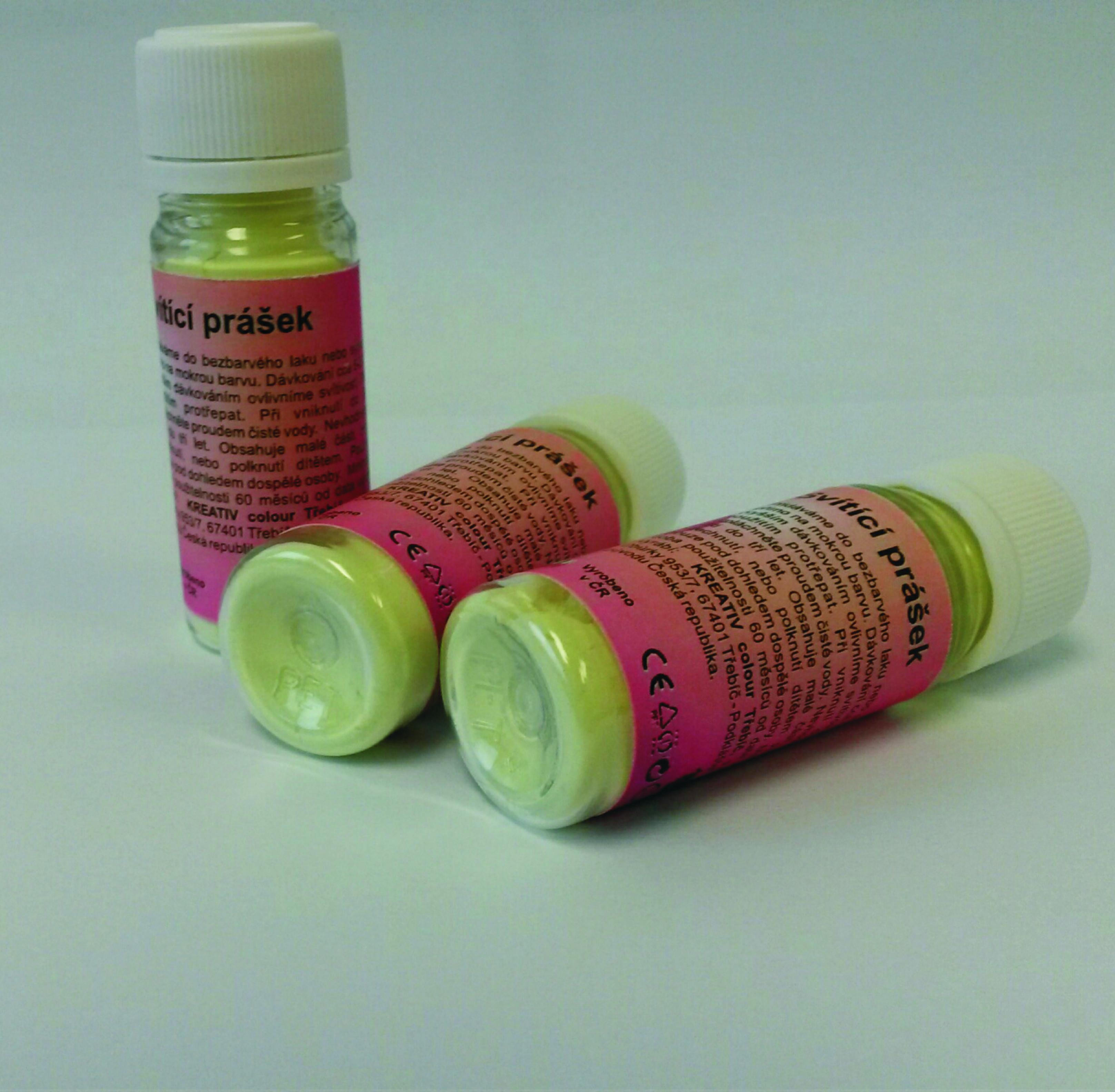 Prášek je vhodný do vodou ředitelných i syntetických barev a laků. Po nasvícení svítí ve tmě zelenožlutě. Intenzitu a dobu svícení ovlivníte dobou nasvícení. K nasvícení můžete použít denní světlo, baterku nebo lampičku. Tip: Pro aplikaci na textil, smíchejte prášek s textilním lepidlem na...