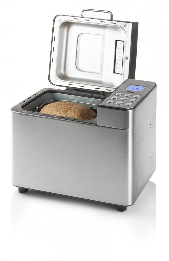 Nerezová domácí pekárna - DOMO B3971Kvalitně zpracovaná domácí pekárna s nerezovám v celonerezovém provedení a jednohákovou nádobou. Je vhodná do větší a střední domácnosti, neboť v ní lze upéct chleba o váze až 1000g. Vyniká hlavně širokým výběrem (18) přednastavených programů a tichým, ale...