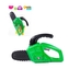 Motorová pila je vyrobena v zářivě zelené barvě, má páku, po stlačení se řetěz pily začne pohybovat.