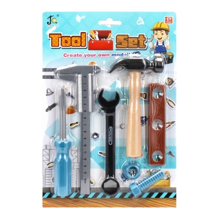 Sada nářadí zaujme každého fanouška DIY. Díky těmto pomůckám si děti poradí s různými stavbami.Obsah sady: přezka, kladivo, šroubovák, deska, 1x šroub + kryt na šroub, klíč. Všechny prvky vyrobeny z plastu.Rozměry (D x V x H) [cm]: 20x29x3, rozměr produktu (D x V x Š) [cm] -kladivo 8x15x3....
