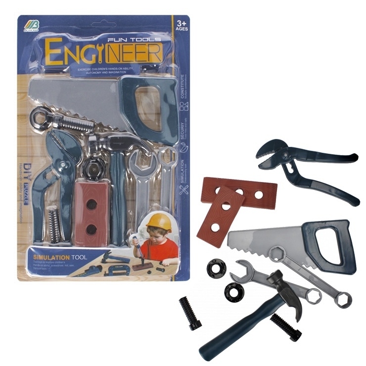 Sada nářadí zaujme každého fanouška domácí kutily. Díky těmto pomůckám se děti budou moci zapojit do různých staveb. Možná z nich budou v budoucnu opravdu mistři této profese. Balení obsahuje ruční pilu, kladivo, klíč, 2x šroubovák, 2x šrouby + krytky šroubů, deska. Rozměry balení jsou 23x35x4cm. Souprava je určena pro děti ve věku 3+.