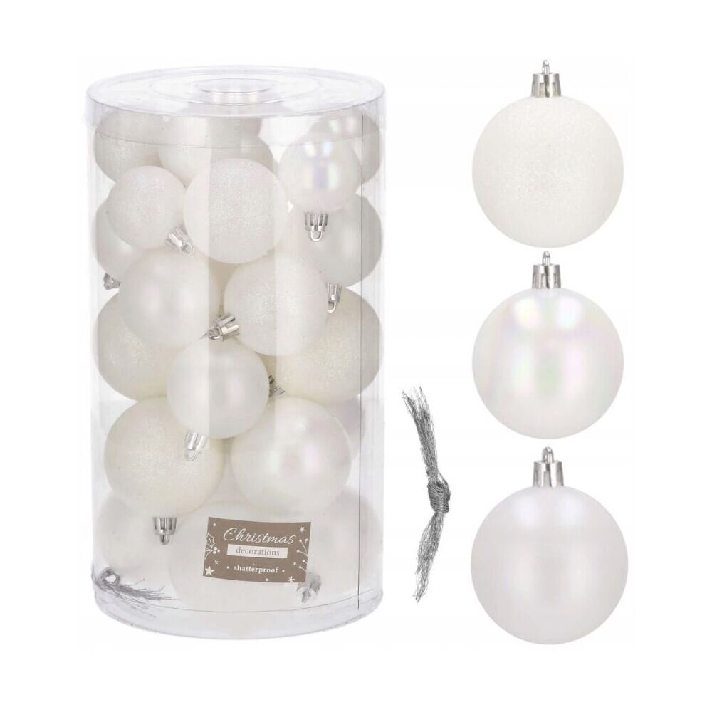 Vánoční baňky bílé mix - 4/5/6cm, sada 30ks