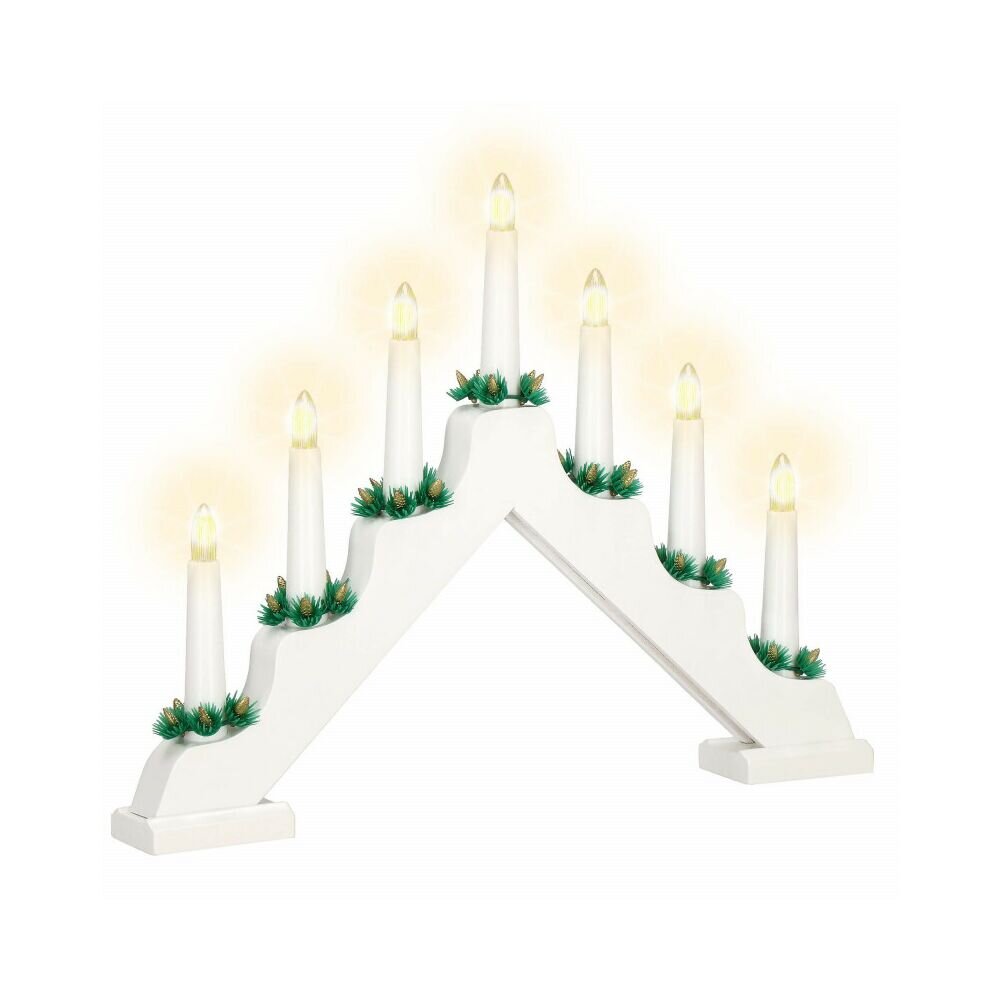 LED vánoční svícen - 7 svíček, 30cm, 2xAA, bílý