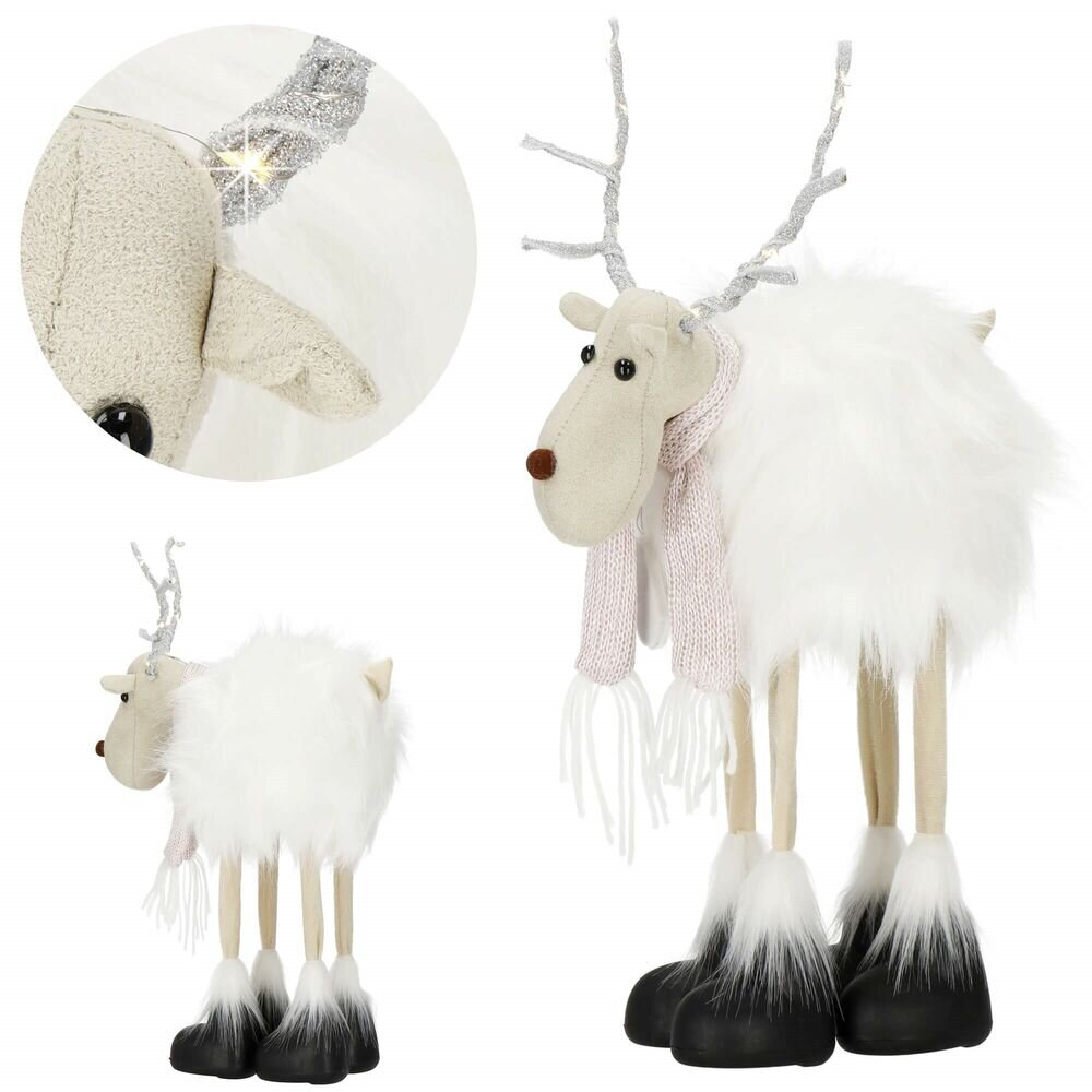 Vánoční sob svítící 48cm bílý, vánoční dekorace