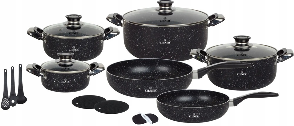 Sada mramorových hrnců Zilner je vyrobena z litého hliníku s nepřilnavým keramickým povrchem obohaceným o mramorové částice. Díky moderní nanotechnologii je povrch extrémně hladký, odolný proti poškrábání a opotřebení, čímž výrazně převyšuje tradiční teflonové povlaky.