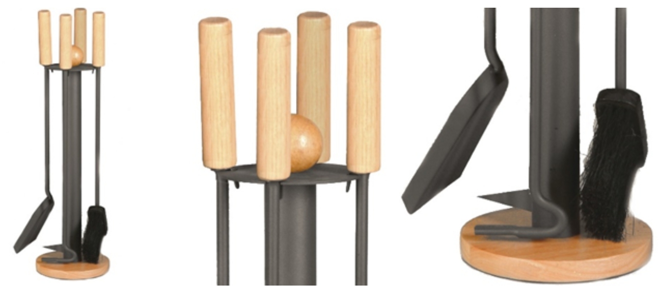 Krbová souprava s dř. držadly. Krbové nářadí lopatka, smetáček, pohrabáč a kleště na brikety jsou zavěšené na stabilním podstavci s dřevěnou základnou, nářadí má i dřevěný úchyt pro přenášení. Rozměr - 19 x 63,5 x 19 cm prečítať celé