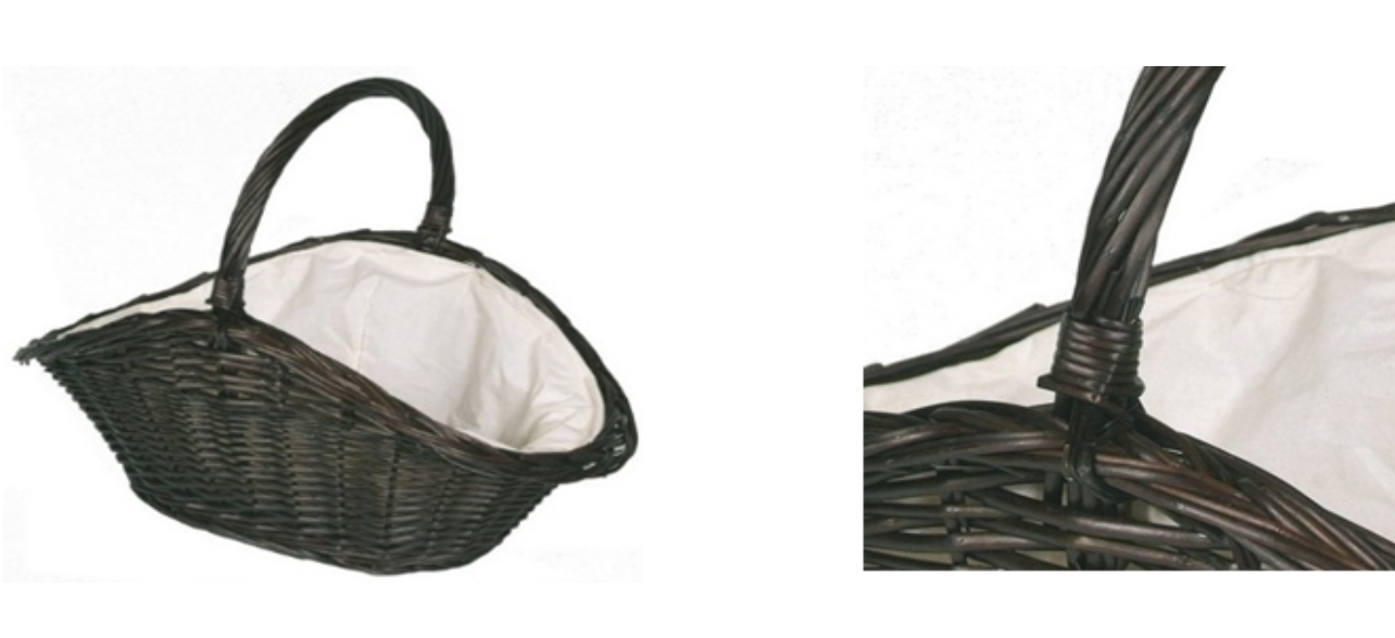 Proutěný oválný koš. Ručně pletený tmavý koš na dřevo nebo jiné palivo, uvnitř potažený jutovou tkaninou s plast. podložkou zamezující propadávání nečistot z koše, je to výborný interiérový doplněk ke kamnům nebo krbu. Rozměr - 45 x 72 x 82 cm prečítať celé