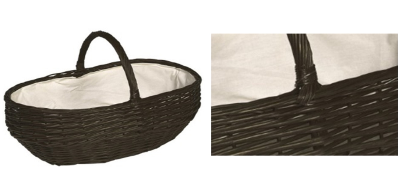 Proutěný oválný koš. Ručně pletený tmavý koš na dřevo nebo jiné palivo, uvnitř potažený jutovou tkaninou s plast. podložkou zamezující propadávání nečistot z koše, je to výborný interiérový doplněk ke kamnům nebo krbu. Rozměr - 66,5 x 58 x 46 cm prečítať celé