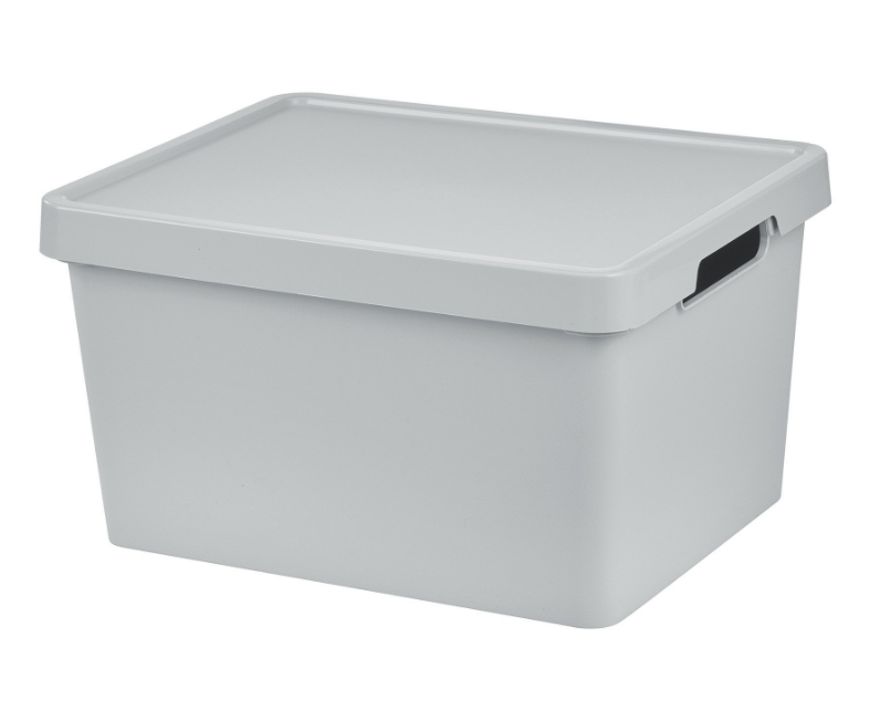 Obdélníkový víceúčelový box s víkem a vestavěnými uchy (16,2 litru) box s lineárním minimalistickým designem.