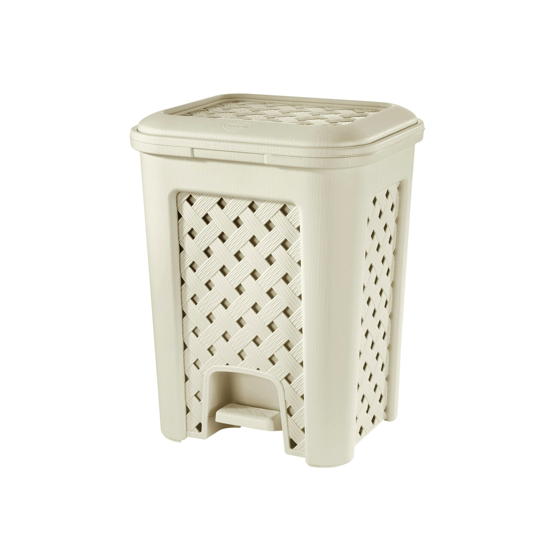 Tento 18litrový pedálový koš má tkaný povrch s proutěným efektem, který mu dodává elegantní a příjemně retro vzhled. Ideální do ložnice, lze ji umístit i do koupelny, kuchyně nebo prádelny. K dispozici také ve verzi s ručním otevíráním.