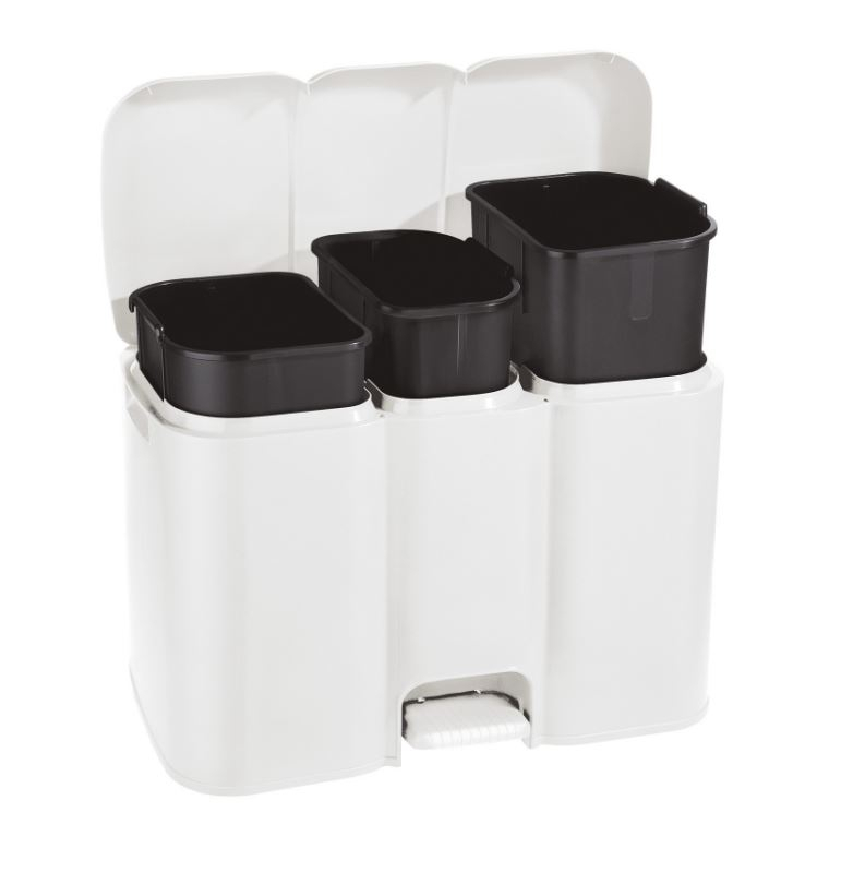 Koš na tříděný odpad Patty 3 bílá, 13+8+13L;58.5X32XH41.5CModpadkový koš určený do malých prostor. Díky kompaktnímu designu, který kombinuje dva vyjímatelné zásobníky různých velikostí v jednom řešení, lze snadno umístit i na nejmenších plochách, aby se optimalizoval dostupný prostor. Praktický...