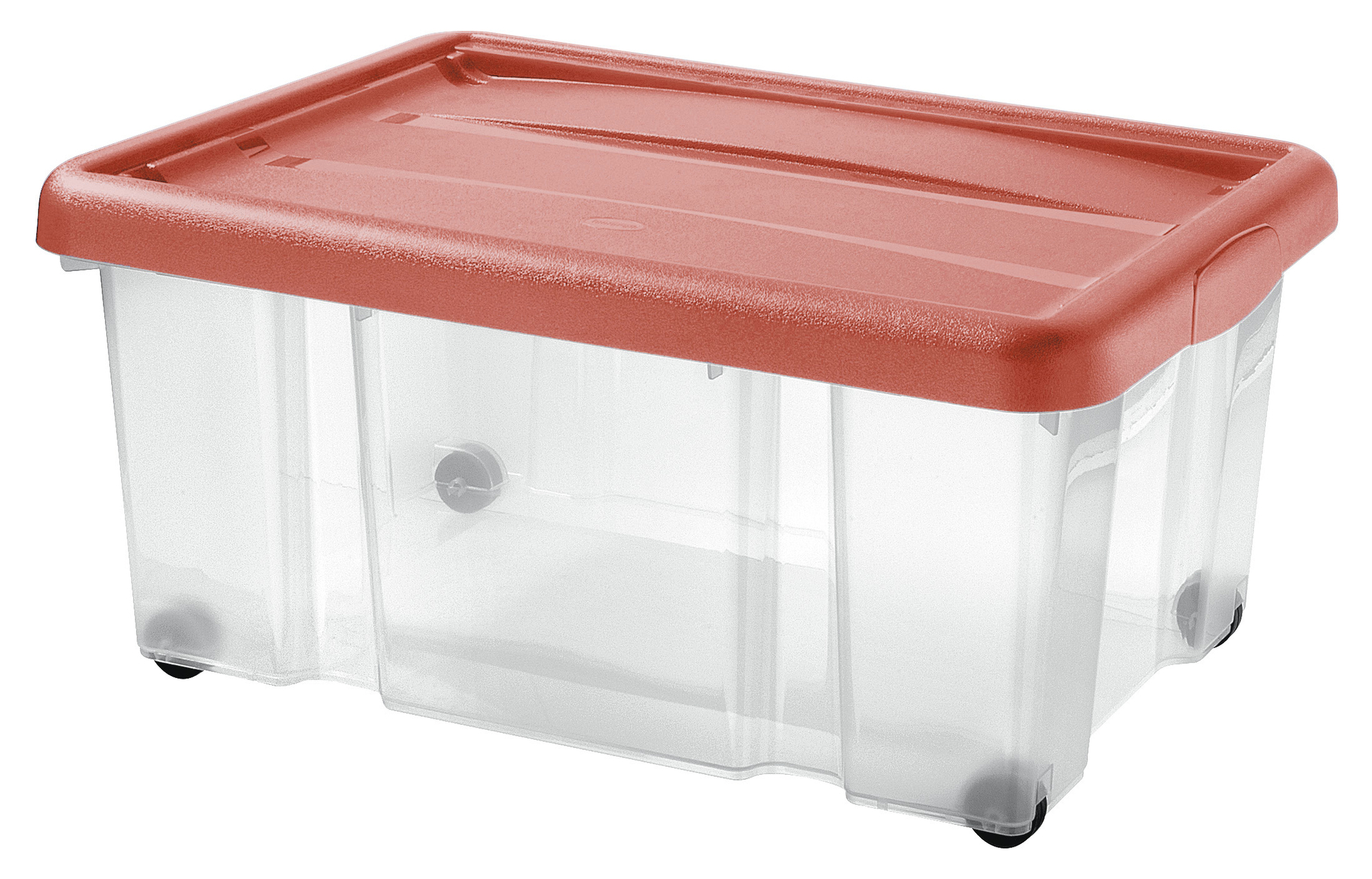 Box PUZZLE s víkem a kolečky 43L transparent červená;60.5X40XH27.3CMPuzzle Box je průhledná nádoba vhodná na širokou škálu předmětů. Prostorný box,vybavený kolečky.Tato verze je ideální pro ukládání hraček, řemeslných předmětů, hobby nářadí, sezónních dekorací a mnoho dalšího. Navíc čtyři rohová...