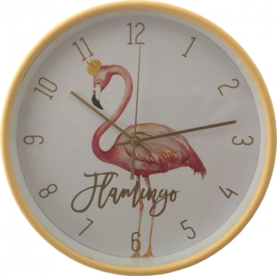 DUE ESSE, Nástěnné hodiny Plameňák, průměr 25 cm, žluté