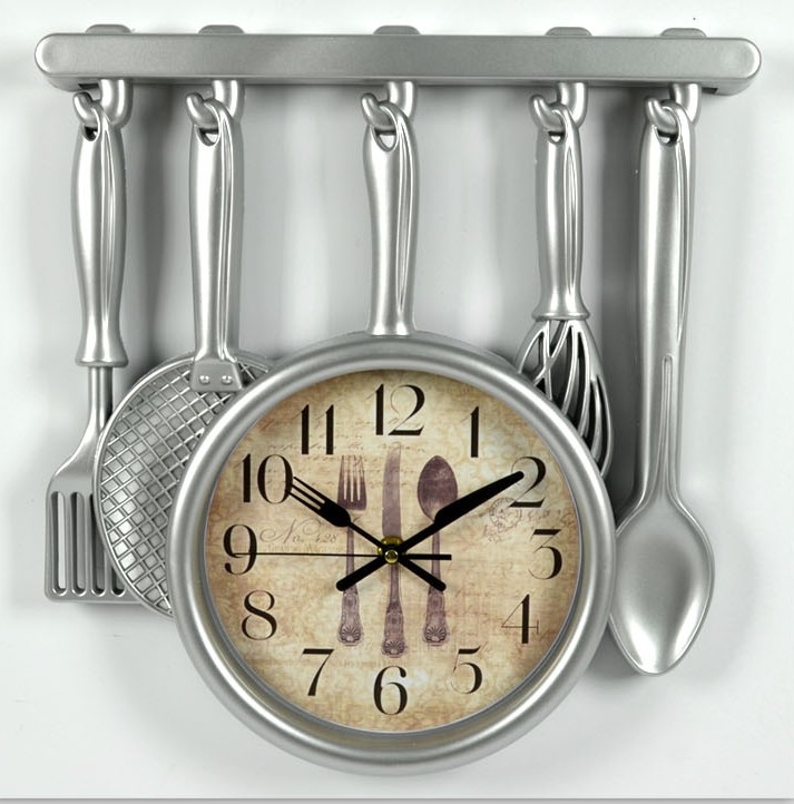 DUE ESSE, Nástěnné retro hodiny kuch. náčiní, barva stříbrná