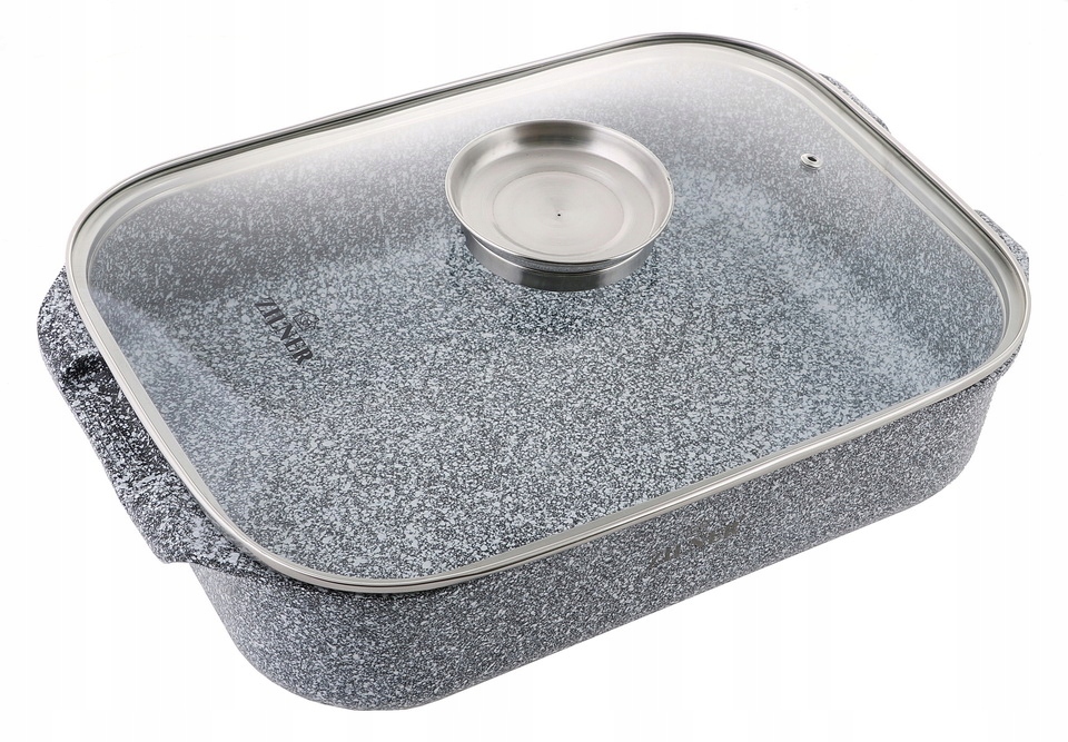 Pekáč s nepřilnavým mramorovým povrchem a skleněným víkem, objem 6 l