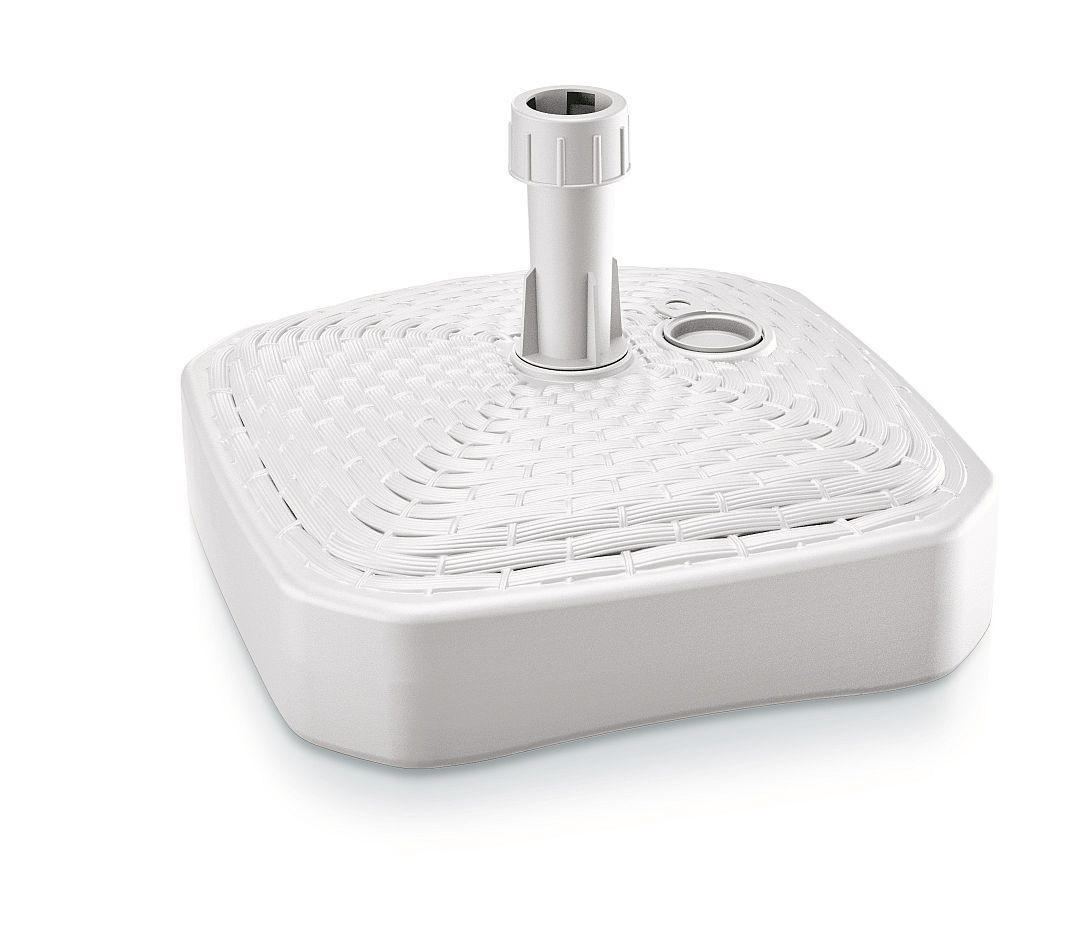 Podstavec pod slunečník hranatý UMBRELLA v barevném provedení bílé. Zdobný vzhled - imitace ratanu.