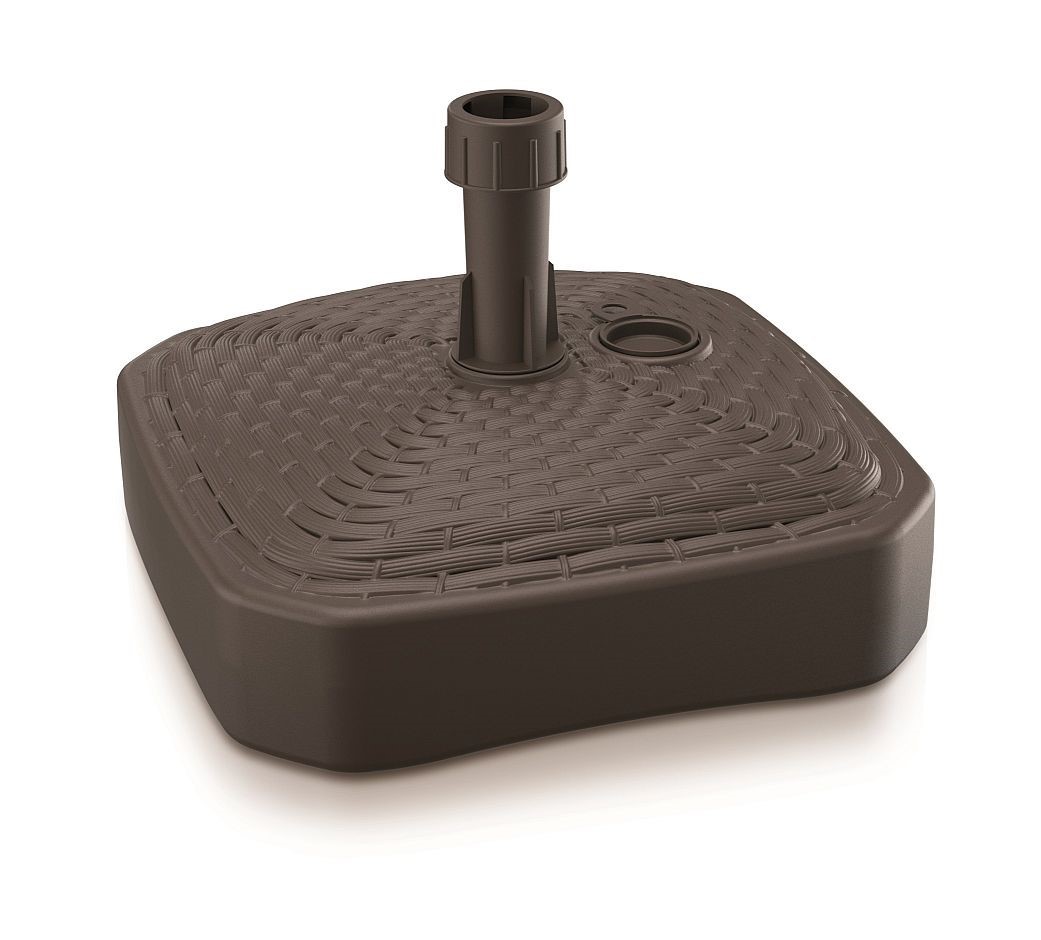 Podstavec pod slunečník hranatý UMBRELLA v barevném provedení umbra (zemitá hnědá). Zdobný vzhled - imitace ratanu.