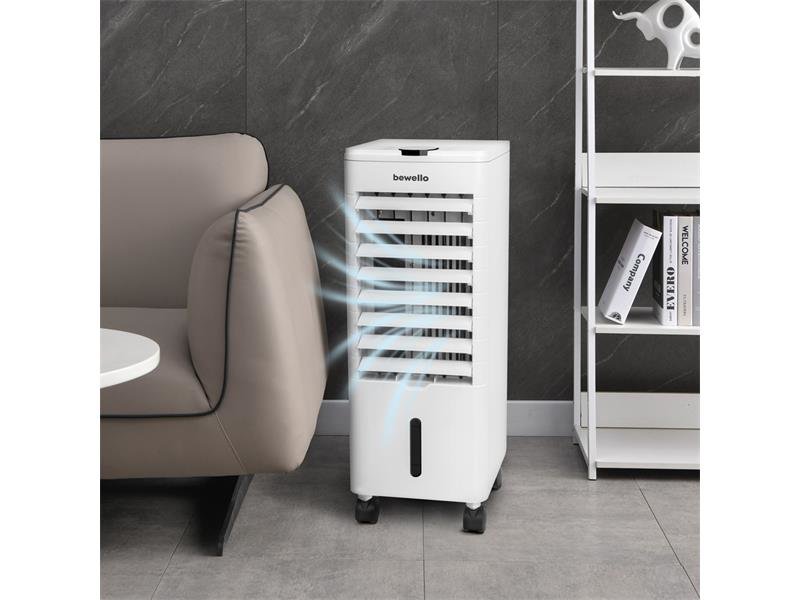 Před létem se pokoušíme udělat vše pro to aby v našem bytě byla teplota příjemná. S tímto chladičem vzduchu na kolečkách můžete snadno zvýšit své pohodlí. Stačí naplnit do nádrže studenou vodu, můžete přidat i led a připojit do elektrické sítě a okamžitě si můžete užívat chladivý vánek. Přístroj je vhodný i pro zvlhčování vzduchu v místnosti, takto můžete předejít nezdravě nízké úrovni vlhkosti vzduchu. Pro ovládání přístroje se nemusíte postavit, požadovanou funkci můžete nastavit pomocí dálkového ovladače.