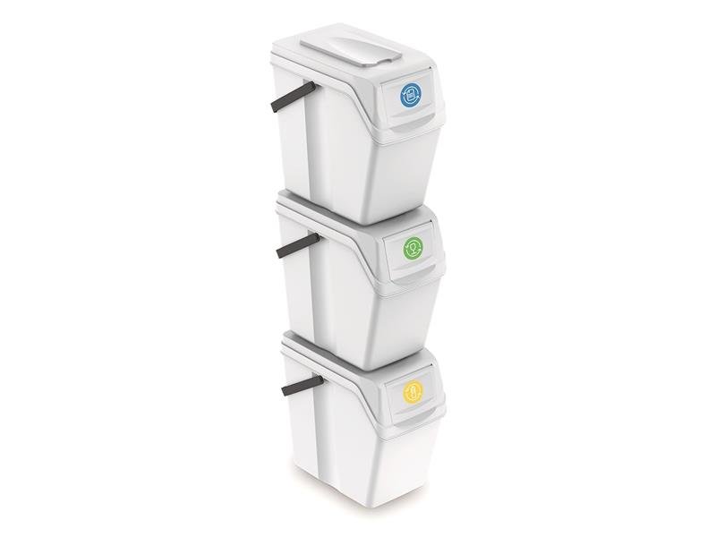 Sada 3 odpadkových košů SORTIBOX II- modulární konstrukce- snadná stohovatelnost- snadné třídění domácího odpaduTechnické parametry:- Objem: 3 x 25 litrů- Rozměry jednoho koše (šířka x hloubka x výška): 24x40,2x37,7 cm- Barva: Bílá- Hmotnost: 2502 g- Materiál: PlastObsahuje sadu...