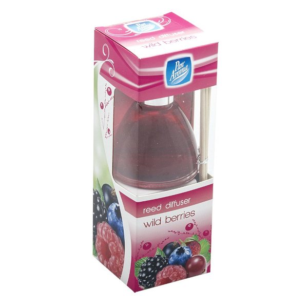 PanAroma bytový difuzér - vůně Wild Berries - 50mlpříjemný bytový difuzér v krásném flakonku pro aplikaci bambusových tyčinek. Tento bytový difuzér bude krásnou voňavou dekorací kdekoli ve Vašem interiéru. Použití: z lahvičky odstraníte špunt a následně aplikujete bambusové tyčinky, čím více tyčinek do flakonku vložíte, tím intenzivněji bude bytový difuzér PanAroma vonět.