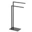 Elegantní a tvarovaný – držák na ručník STYLE v černé barvěDržák ručníku je díky své obdélníkové základně a 2 mírně posunutým držákům na ručníky ve tvaru L elegantní a tvarovaný. Dodejte své koupelně moderní nádech – s matně černými doplňky ze série Style.Gumové nožičky na spodní straně věšáku na...