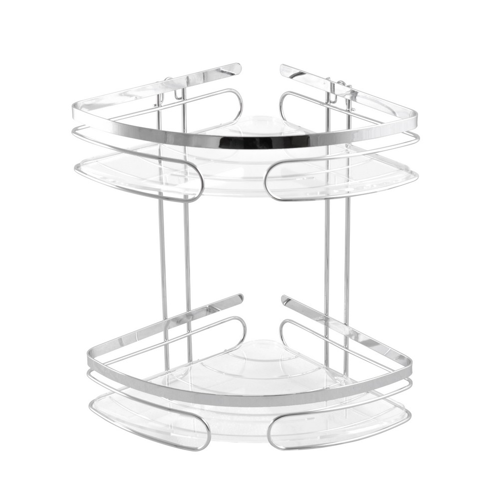 Kvalitní dvoupatrová rohová koupelnová polička vyrobená z chromovaného drátu. Je vyrobena z chromovaného kovu a plastu. Instalace se provádí pomocí 3M samolepicí pásky. Maximální nosnost police je až 4 kg. Rozměry 25.5 x 19.5 x 28 cm. EAN 5901812357731 prečítať celé