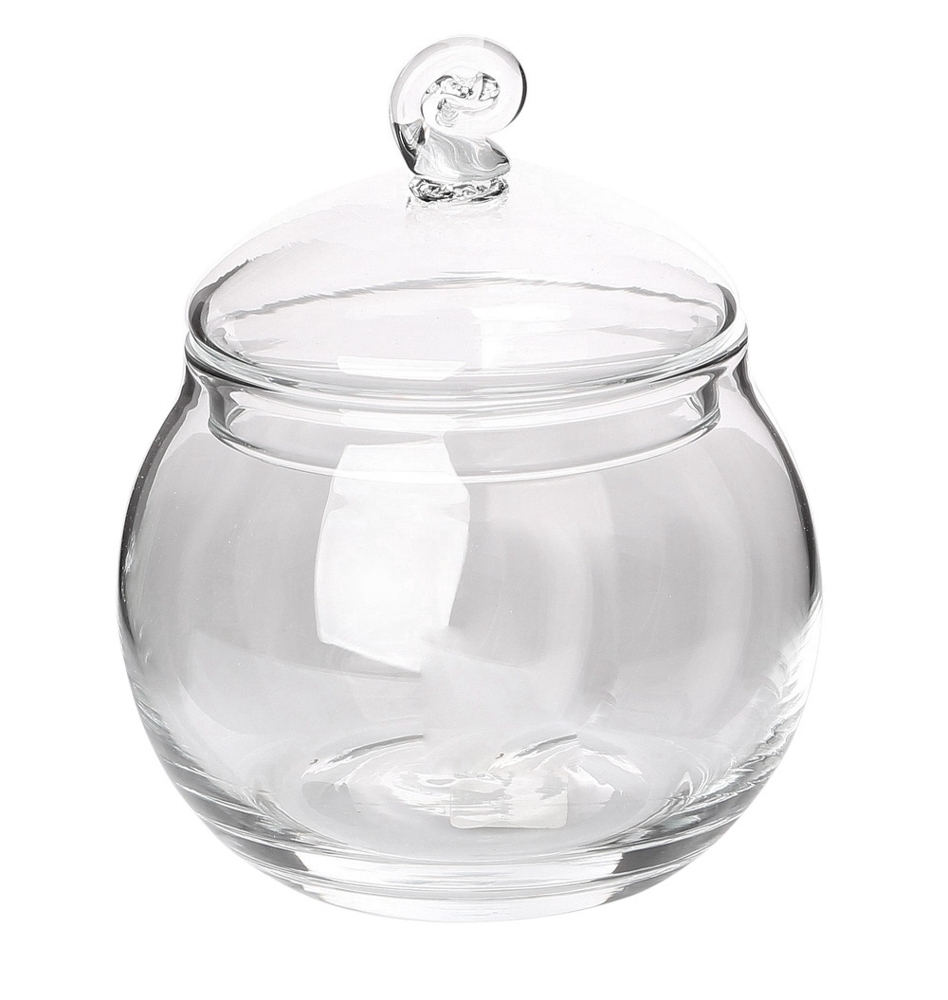 Bombonierkao średnicy 12cm, to ponadczasowy przedmiot, który pozwoli nam w gustowny sposób podać zaproszonym gościom cukierki lub czekoladki. Gładkie, przezroczyste szkło pięknie wyeksponuje kolorowe łakocie. Pokrywa bombonierki posiada poręczny uchwyt, dzięki któremu z łatwością można ją podnieść, gdy tylko najdzie nas ochota na ulubione słodycze. Gładka bombonierka to nie tylko praktyczne naczynie ale również gustowna ozdoba każdego pomieszczenia.