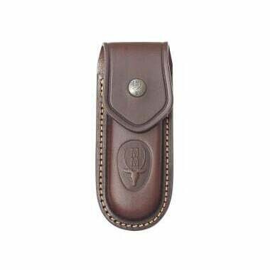 Hnedé kožené púzdro vhodné pre nože veľkosti cca 12,5 x 3,5 cm. Zatvára sa pomocou kovového klipu, ktorý je na spodnej strane podlepený, aby nedošlo k poškrabaniu noža. prečítať celé