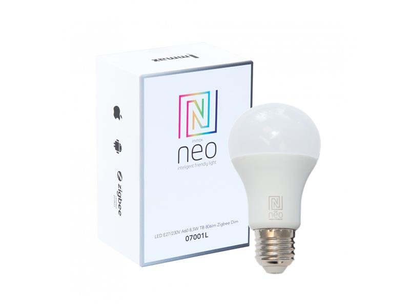 Chytrá stmívatelná LED žárovka Immax NEO je založena na energeticky úsporné, bezpečné a spolehlivé bezdrátové komunikaci na protokolu ZigBee 3.0, která je kompatibilní s iOS, Android, Amazon Alexa, Apple Siri zkratky, Google Assistant, Philips HUE. Žárovka Immax Neo SMART LED umožní díky nastavení stmívání dokonalé osvětlení v každé situaci. Jinou intenzitu světla využijete pro čtení, jinou ke sledování televize. Skvěle se hodí do těchto designových svítidel řady COCONO, CONO, CRATER, ELIPTICO, FUENTE, OPTICO, TROMPETA. Inteligentní žárovka se ovládá dálkovým ovladačem nebo aplikací IMMAX NEO, která je k dispozici pro operační systémy Android nebo iOS, prostřednictvím které můžete snadno ovládat osvětlení podle libosti odkudkoliv. Žárovka Immax Neo SMART LED poskytuje barevnou teplotu světla 2700K – 3000K a světelný tok 806 lumenů, tato hodnota odpovídá klasické žárovce s výkonem 80W. Systém IMMAX NEO je postaven na ověřené technologii ZigBee 3.0, která představuje to nejpokrokovější řešení v oblasti chytré domácnosti a je navržena tak, aby byla schopna propojit výhledově všechna zařízení domácí elektroniky do jednoho jednoduše ovladatelného komplexu.