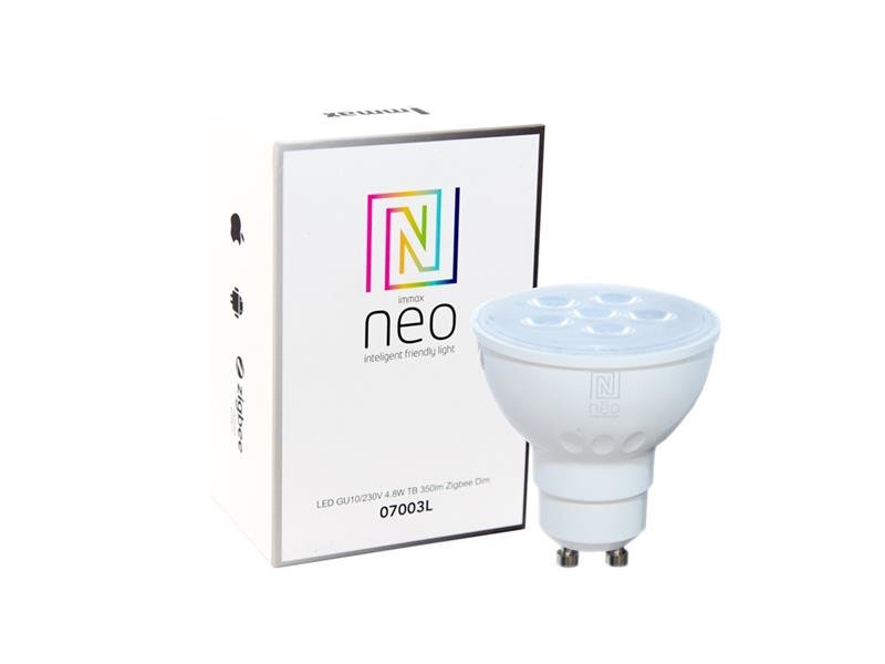 Chytrá WiFi žárovka LED GU10 4.8W bílá teplá IMMAX NEO 07003L Chytrá stmívatelná LED žárovka Immax NEO je založena na energeticky úsporné, bezpečné a spolehlivé bezdrátové komunikaci na protokolu ZigBee 3.0, která je kompatibilní s iOS, Android, Amazon Alexa, Apple Siri...