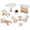 Nieważne, czy na zewnątrz jest burza, czy pada śnieg. Dzięki tym pięknym, małym meblom ogrodowym, można również wyczarować lato we wnętrzu. Od grilla po leżaki i parasol, ten 9-częściowy zestaw ma wszystko by zaczarować ogród Twojego dziecka. Mebelki stworzone w rozmiarze idealnie pasującym do dużych domków dla lalek Goki.