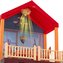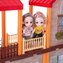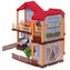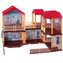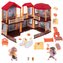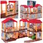 Domeček / vila pro panenky s červenou střechou + osvětlení a nábytek a panenky