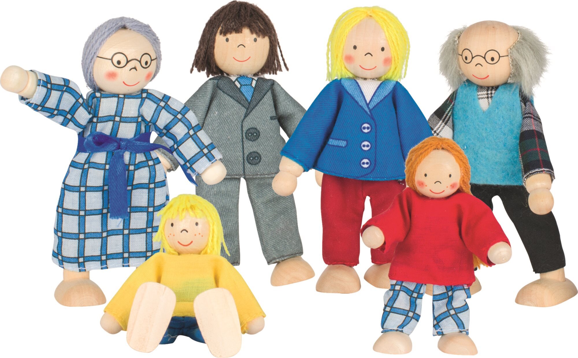 Dřevěné panenky jsou pohyblivé, mohou sedět, stát nebo ležet. Hodí se do domečků nebo pro samostatné hraní. Vhodné do všech domečků pro panenky značky Goki. Použitý materiál: dřevo, drát, různé druhy textilií. Výška panenek: 9 - 11 cm. Balení obsahuje 6 ks postaviček: babičku,... prečítať celé