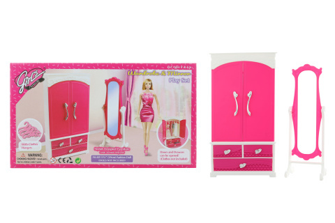 Glorie Šatní skříň se zrcadlem obsahuje plastovou skříň s otevíracími šuplíčky a dveřmi. Ve skříni jsou ramínka na šaty pro panenky.Součástí balení je také zrcadlo. Panenka není součástí balení. Rozměry balení cca 29,5 x 17 x 7,5 cm. Věk 3+ prečítať celé
