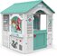 Moderní domeček na zahradu z kvalitního plastu , vyvedený v pastelových barvách. Nemá žádné ostré hrany, proto je zcela bezpečný i pro nejmenší děti. Domek má tyrkysové půlkřídlové dveře s kulatou červenou rukojetí, sedlovou střechu a otevíratelné okenice. Součástí balení je 11 kusů...