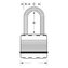 - Visací zámek o šířce 64 mm s tělem z vrstvené oceli zpevněný titanem pro vyšší odolnost a spolehlivost.