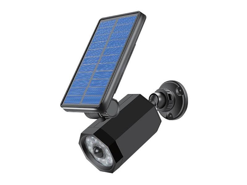 LED lampa se solárním panelem, která funguje také jako atrapa kamery.