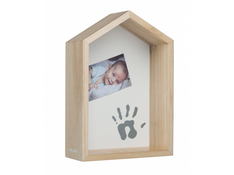 Dřevěný rámeček Baby Art Shelve House nabízí prostor pro fotografii a otisk ručičky nebo nožičky Vašeho miminka. Vyrobte si krásnou dekoraci, která vám zároveň pomůže uchovat vzpomínky na krásné období po narození vašeho dítěte.