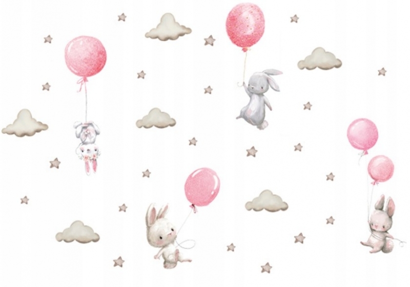 Nálepky, dekorace na zeď Tulimi - Zajíc s balónky XXL, růžová