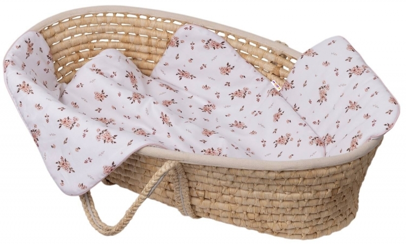 Sada do kočárku, bavlněná 2D sada, Little flowers, bílá/růžová