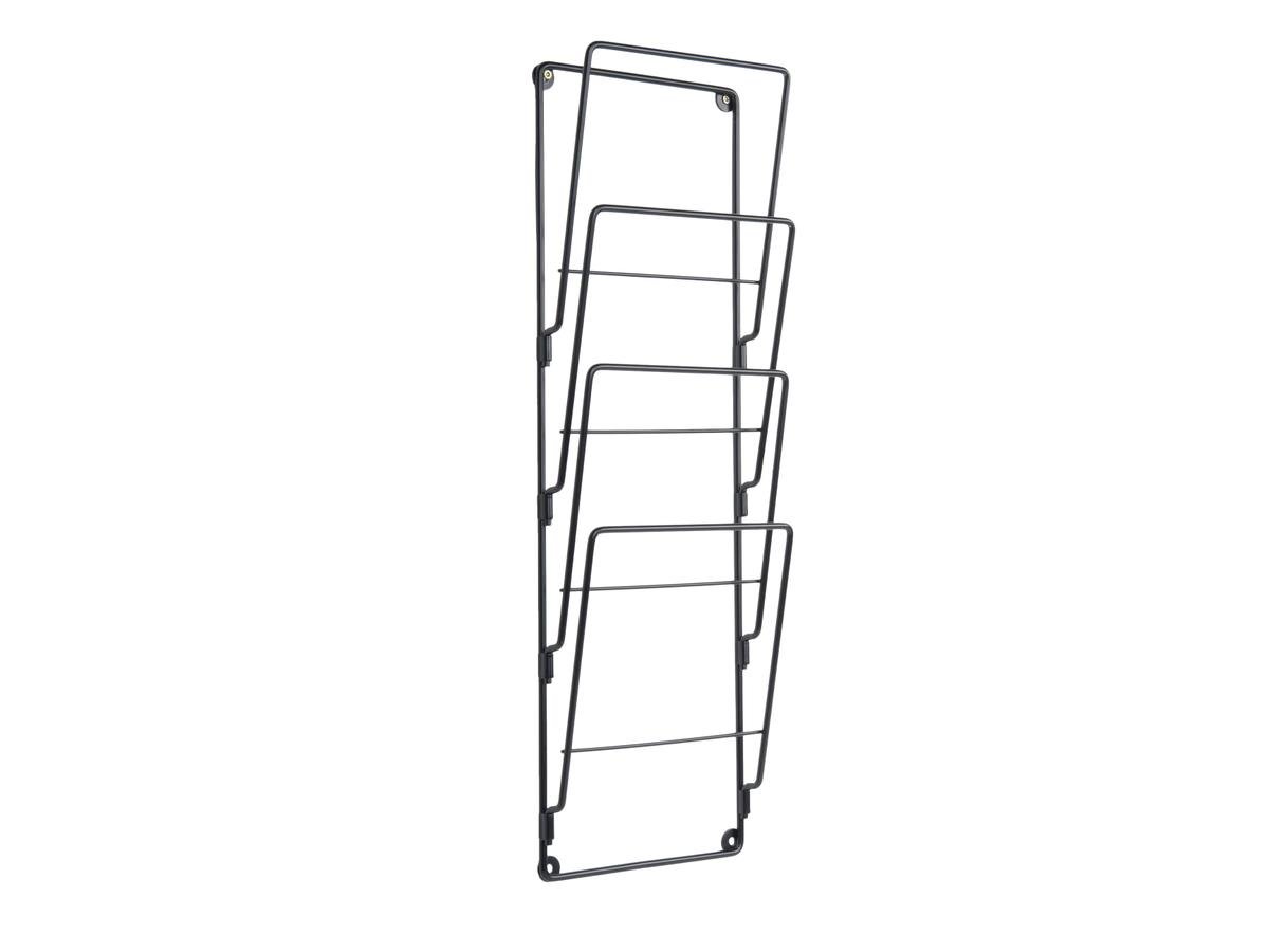 Nástěnný stojan na noviny a časopisy z lakovaného kovu. Novinový stojan se dá jednoduše nainstalovat na stěnu navrtáním otvorů do zdi a přišroubováním.