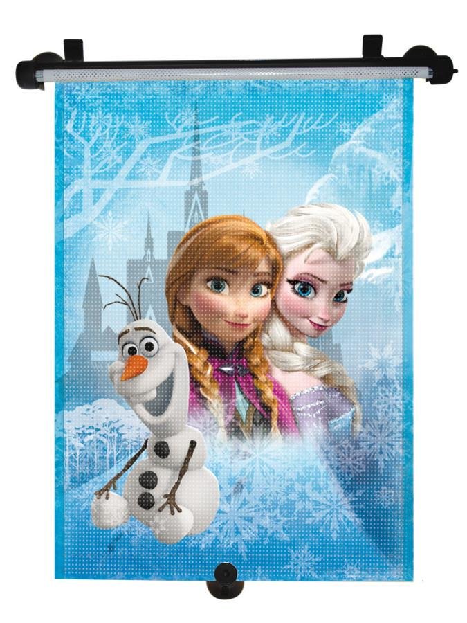 Stínící roletka na okno automobilu s motivem Disney. Sluneční clonu lze na okno upevnit třemi přísavkami nebo dvěma nastavitelnými háčky. Velkou předností stínítka je, že ho lze zablokovat v libovolné pozici a zmáčknutím tlačítka se roletka jednoduše sroluje. Rozměry cca 33x56 cm. Odstíny a tvary obrázku se liší dle aktuální nabídky.- licenční produkt