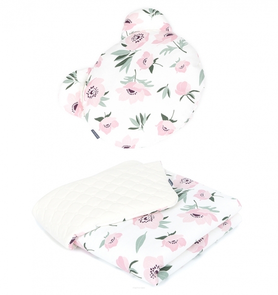 2-dílná sada, dečka Velvet 75 x 100 cm s polštářkem Teddy, Růže, smetanová/ecru