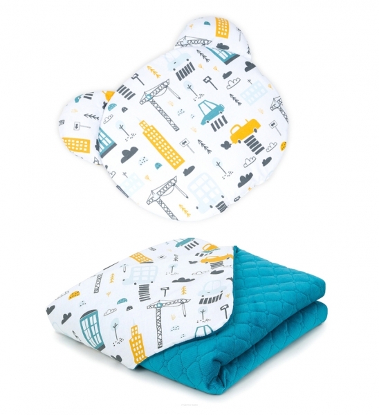 2-dílná sada, dečka Velvet 75 x 100 cm s polštářkem Teddy, Městečko, mořská/bílá