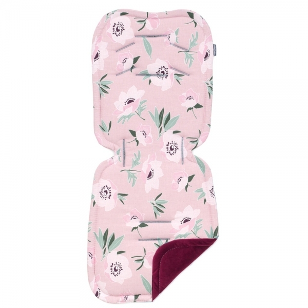 Vložka do kočárku prošívaný Velvet PREMIUM Květy v růžové, bordo