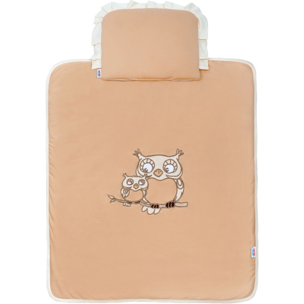 Set do kočárku New Baby Sovičky. Set obsahuje polštářek s volánkem a peřinku s krásným vyšívaným obrázkem soviček. Vše je vyplněno antialergickým vláknem. Set je ušitý z vysoce kvalitního materiálu JERSEY. Rozměry: polštář: cca 32x25 cm, peřinka: cca 82x68 cm. Složení: povlak 100% bavlna, výplň 100% polyester.