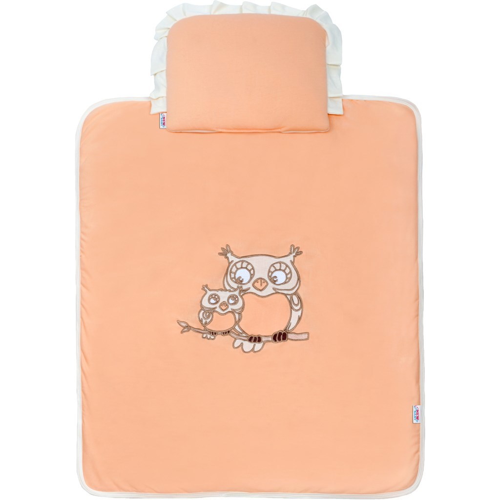 Set do kočárku New Baby Sovičky. Set obsahuje polštářek s volánkem a peřinku s krásným vyšívaným obrázkem soviček. Vše je vyplněno antialergickým vláknem. Set je ušitý z vysoce kvalitního materiálu JERSEY. Rozměry: polštář: cca 32x25 cm, peřinka: cca 82x68 cm. Složení: povlak 100% bavlna, výplň 100% polyester.